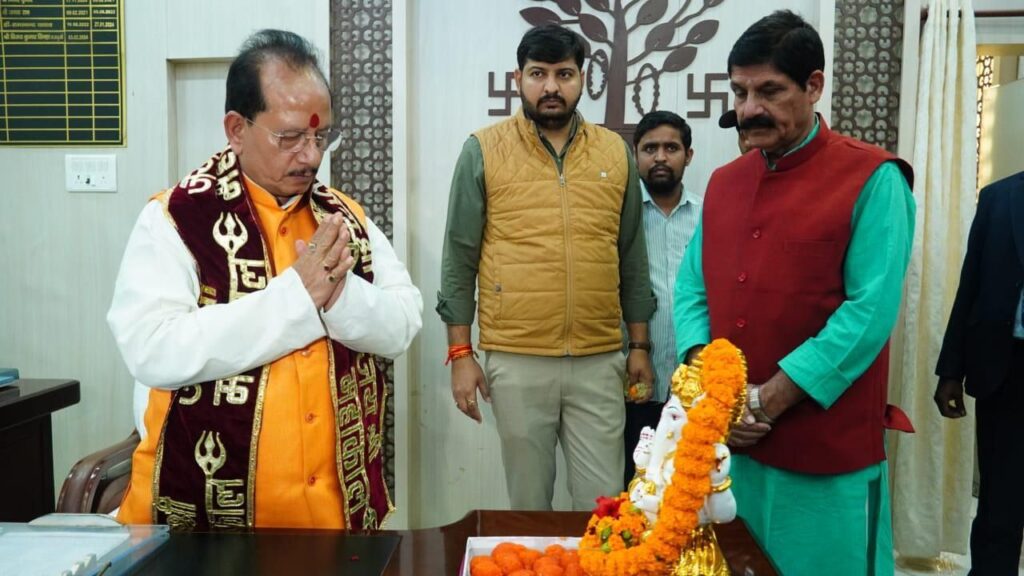 बिहार के उपमुख्यमंत्री श्री विजय कुमार सिन्हा ने आज पटना स्थित खान एवं भूतत्व विभाग के कार्यालय में मंत्री के रूप में औपचारिक रूप से पदभार ग्रहण किया। इस अवसर पर विभाग के सचिव, निदेशक एवं सभी वरीय अधिकारियों ने फूल-गुलदस्तों से उनका हार्दिक स्वागत एवं अभिनंदन किया।