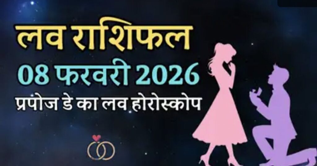 Aaj Ka Love Rashifal – 08 February 2026 (आज का लव राशिफल): आज वैलेंटाइन वीक का दूसरा दिन यानी प्रपोज डे है। आज के लव राशिफल यानी लव होरोस्कोप से आप जान सकते हैं कि आज आपको अपने पार्टनर से प्रपोजल मिलेगा या नहीं। साथ ही आज का दिन आपके लिए कैसा रहने वाला है।